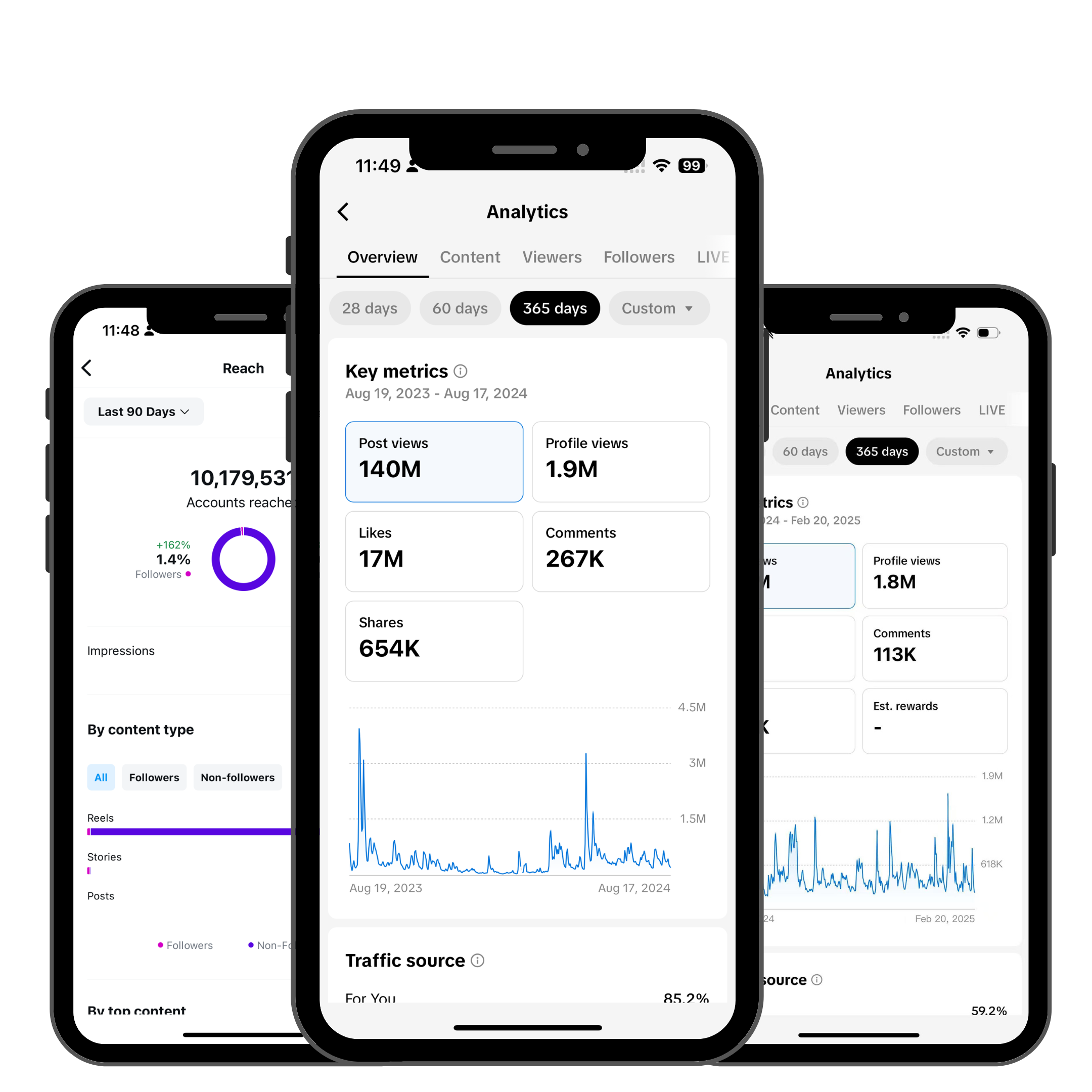 What sets us apart is that we’ve done the work ourselves. Our team has gained over 500 million views across different social platforms and niche categories on our own personal accounts. We’ve replicated this success for multiple businesses by continuously testing, adapting, and staying in tune with the fast-paced world of social media. This hands-on experience has given us an intuition that other agencies and strategists simply lack.